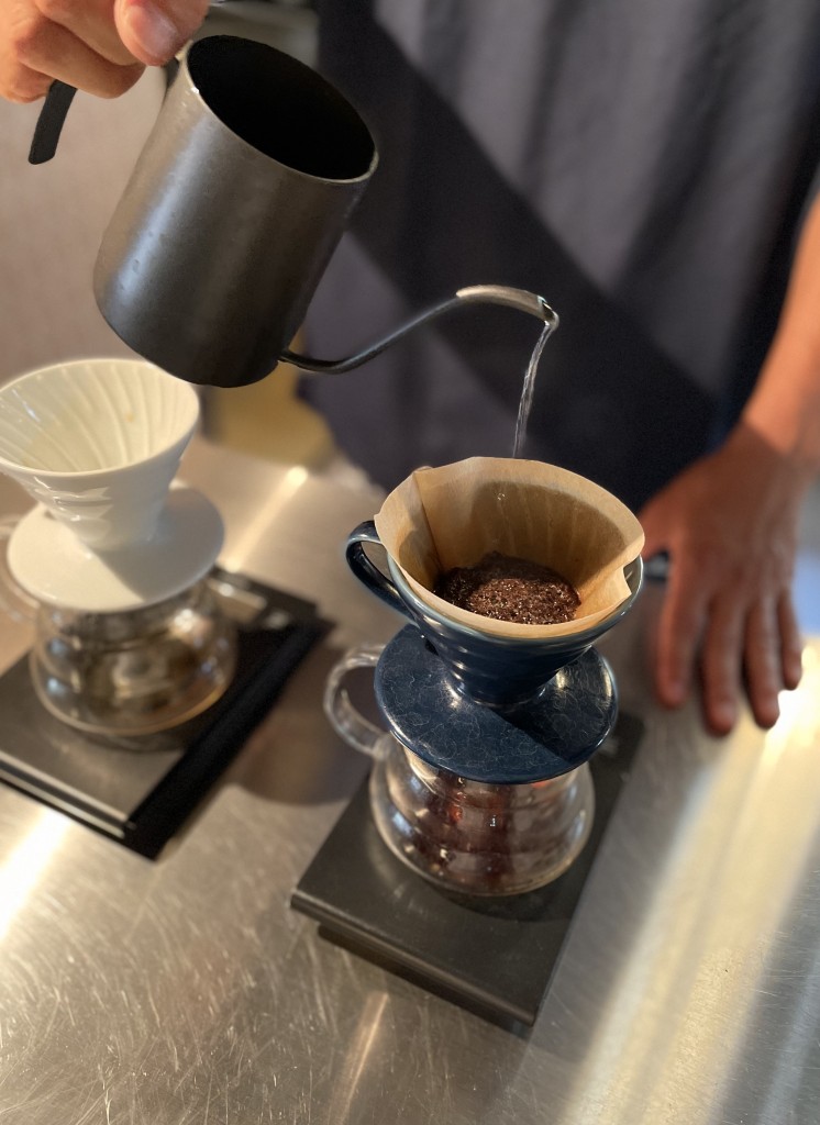 珈琲を淹れる時にはお客様に香りを楽しんでもらうために仕切りのふすまを開けて、ドリップされます。
