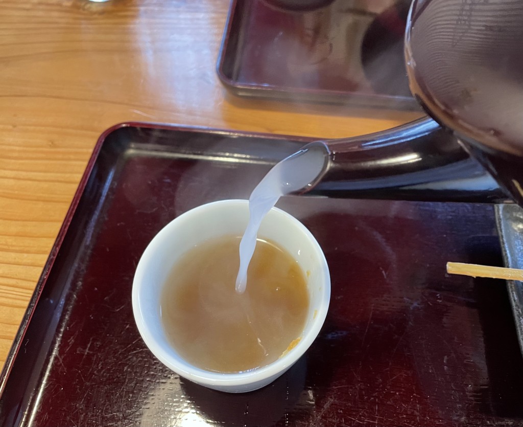 食後には蕎麦湯をサービスしてくれるので、まろやかな風味を楽しんで見てくださいね。