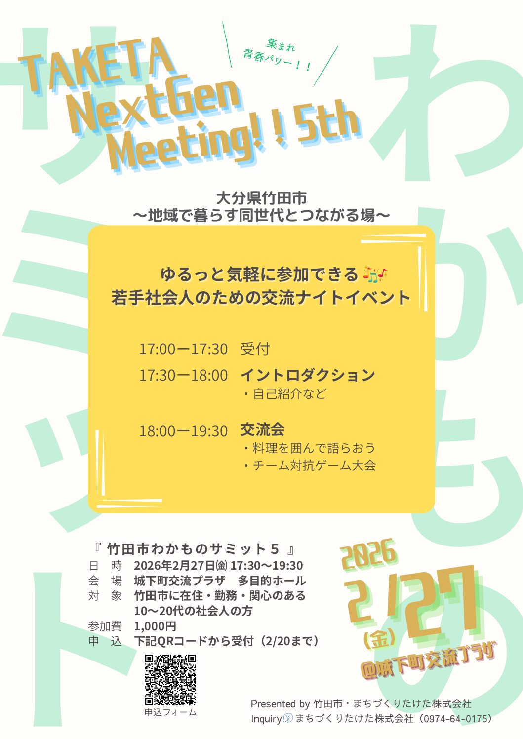 お問合せ:まちづくりたけた株式会社 0974-64-0175